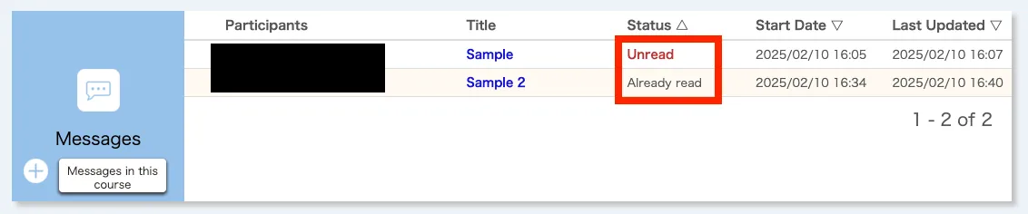 You can find new messages from the “Messages” section of the “Course Top” as follows: