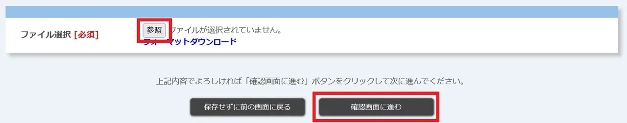 8. UTOLの画面上の「参照」を押して入力したExcelファイルを選択したあと,「確認画面に進む」を押してください.