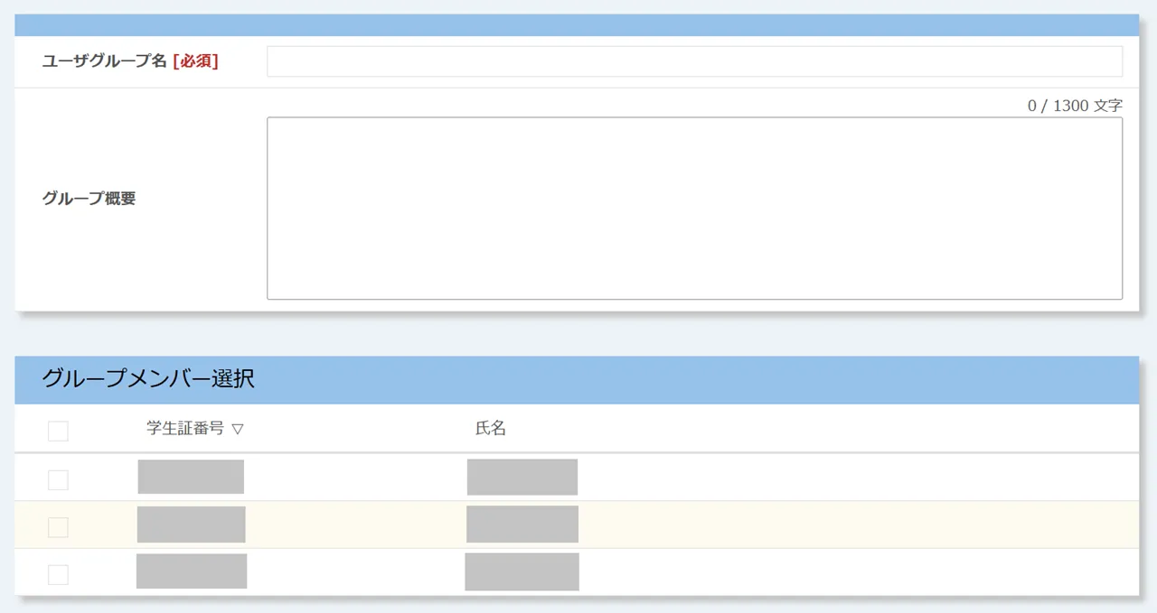 • まず,「ユーザグループ名」と「グループ概要」(任意)を入力してください.これらの情報は,後からユーザグループを区別する際に使用します.